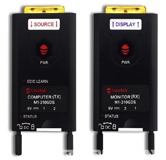 2芯波分复用技术,通过2路单模或多模OM3光纤输出一路DVI信号.